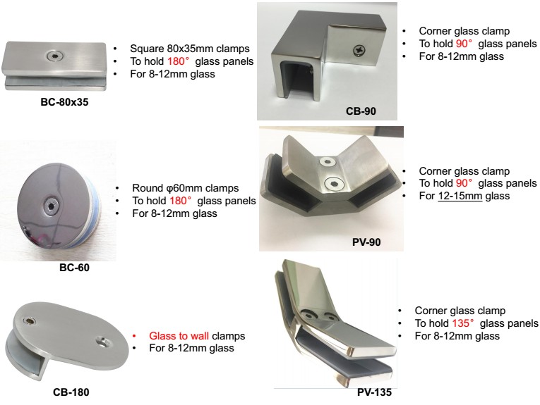 عالية الجودة الفولاذ المقاوم للصدأ 180 درجة مربع نوع الزجاج المشبك حديدي الزجاج المشبك