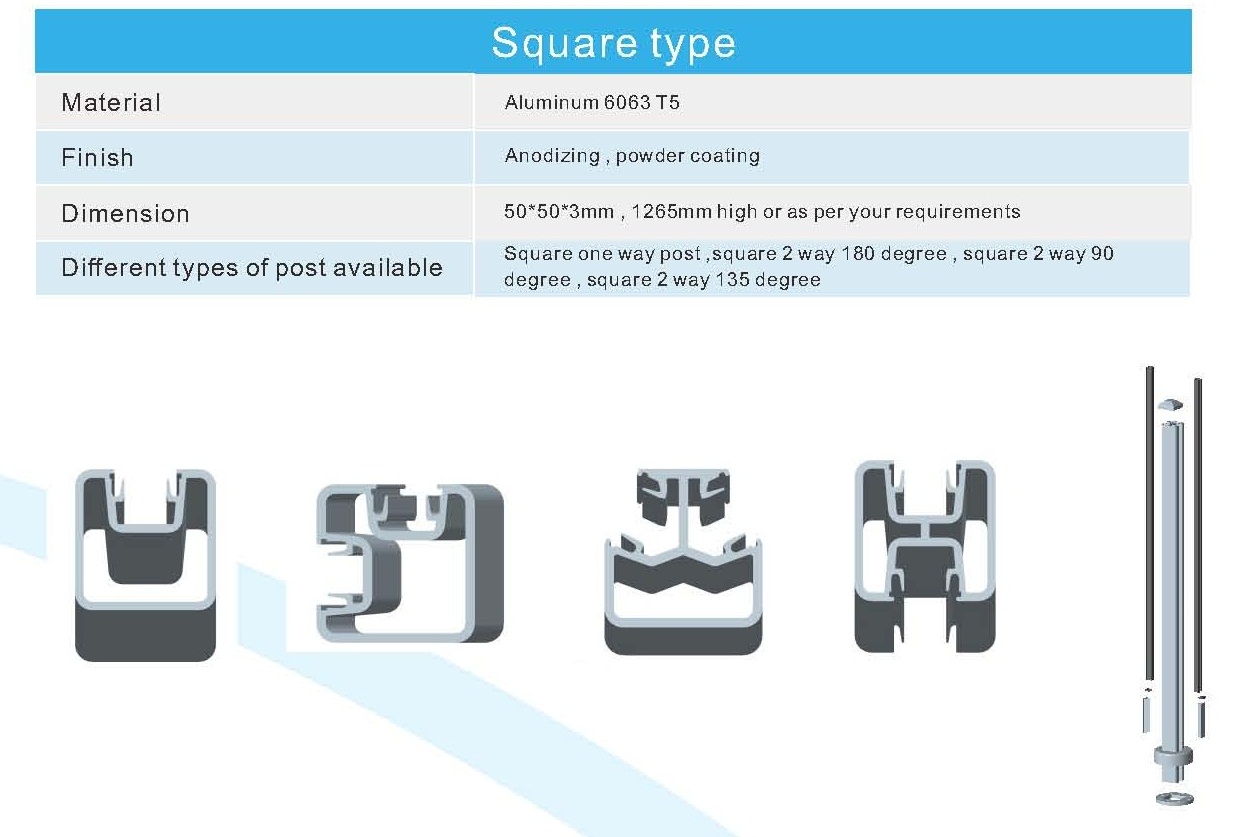 - Sqaure Pfosten: 50 * 50 * 3mm