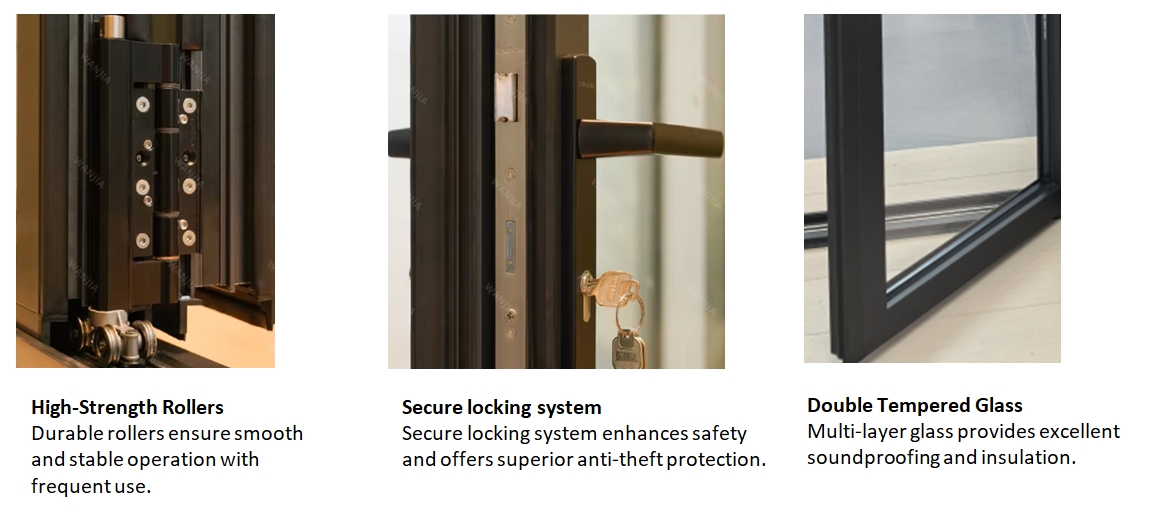 Puertas de aluminio de villa de diseño moderno puertas de acordeón de vidrio doble