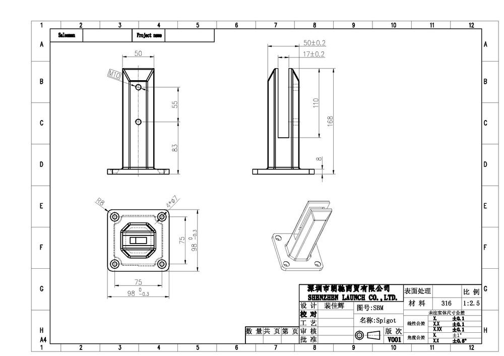 Contenedor de carga para barandas cuadradas de acero inoxidable montadas en la pared. Cepillado inoxidable acero durable terminar&...