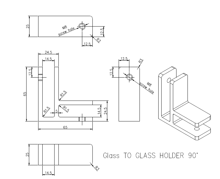 1) Ominaisuudet 90 asteen kulman lasin puristin