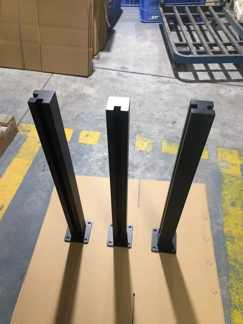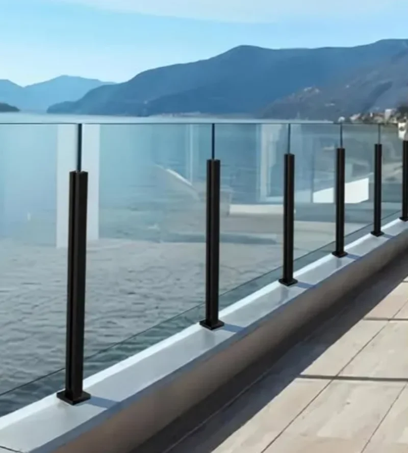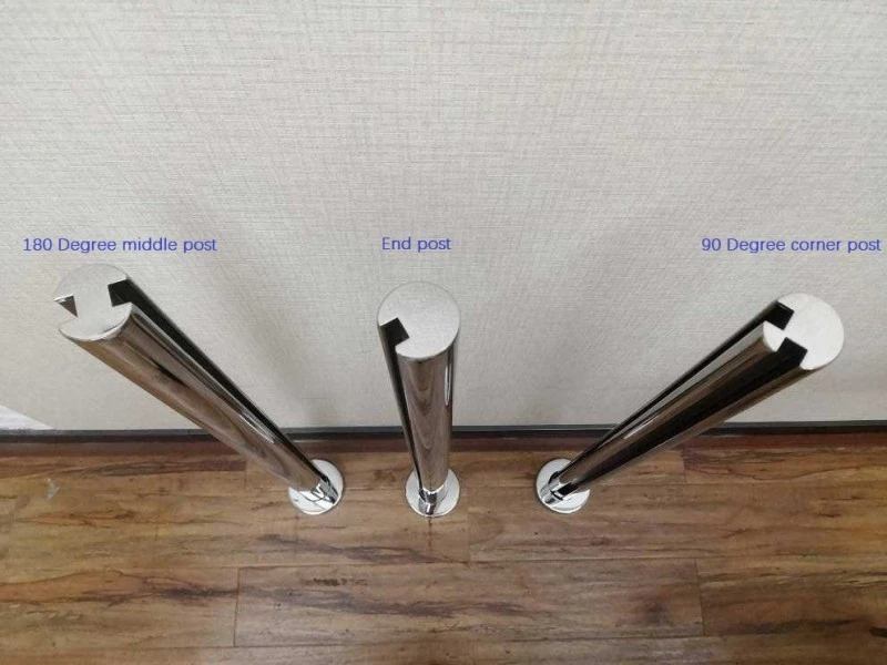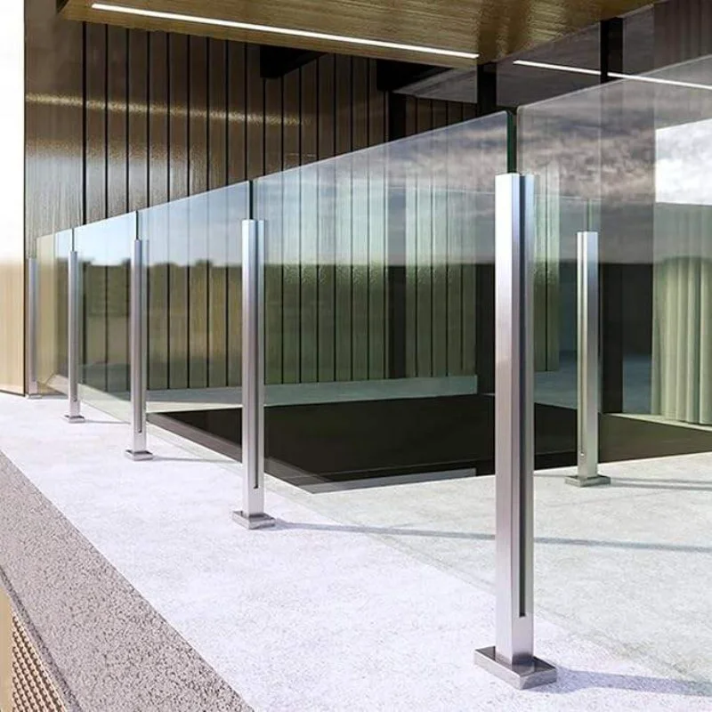Musta ruostumattomasta teräksestä valmistettu uritettu lasinen kaiteenpylväs pyöreänä tai neliömäisenä lasikaiteeseen