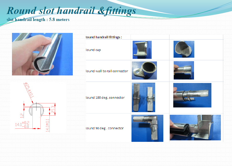 - Γύρο κουπαστή σωλήνα diamension: Διάμετρος 25mm, αυλάκι 14 * 14mm, 5,8 μετρητή ανά μήκος ή σας απαίτηση