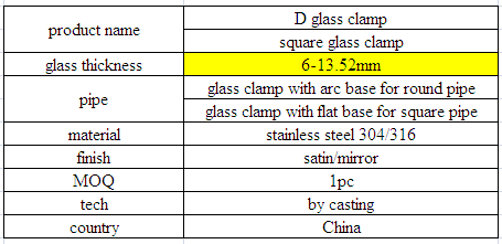 - 1.square morsetto di vetro in materiale 304SS e 316SS