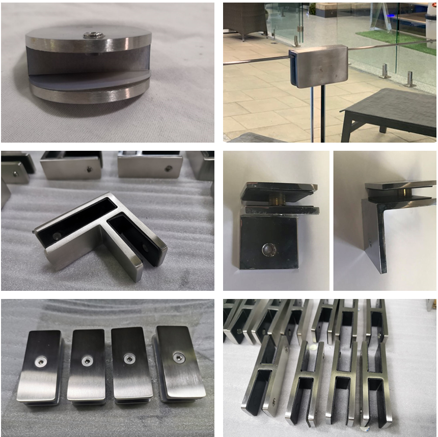 Gorąca Sprzedaż Chrome lub czarna Podwójna strona Fix Balkon Balustrada Ze Stali Nierdzewnej 180 Stopni Zacisk Szklany
