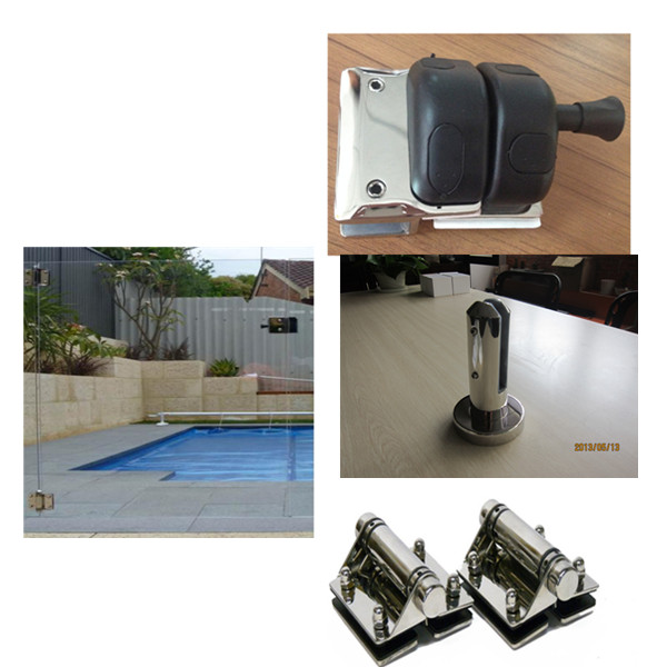 All hardware is SS316 grade,available in brushed and mirror finish. They are designed to hold 8-13.52mm thick glass. It is no holes needed in the glass panel when installation and we will give you the drawing of hole position for glass door when hinge and latch installed.