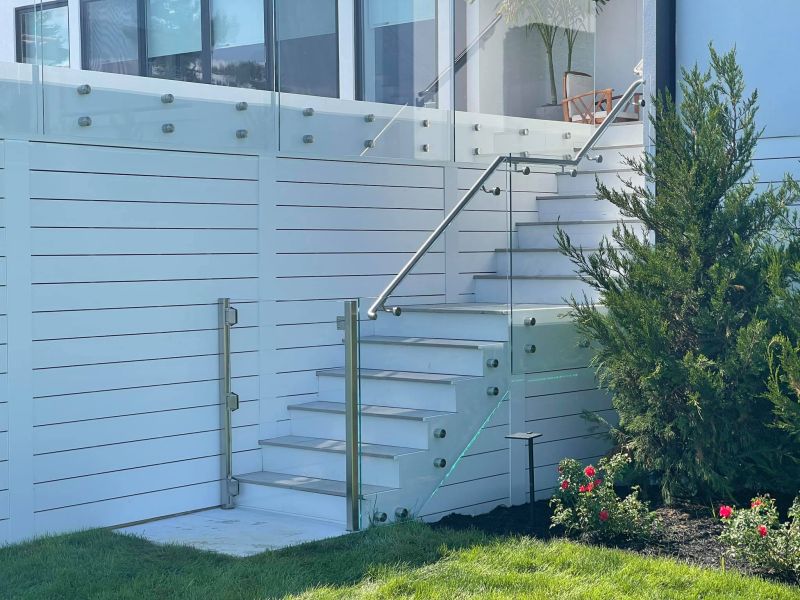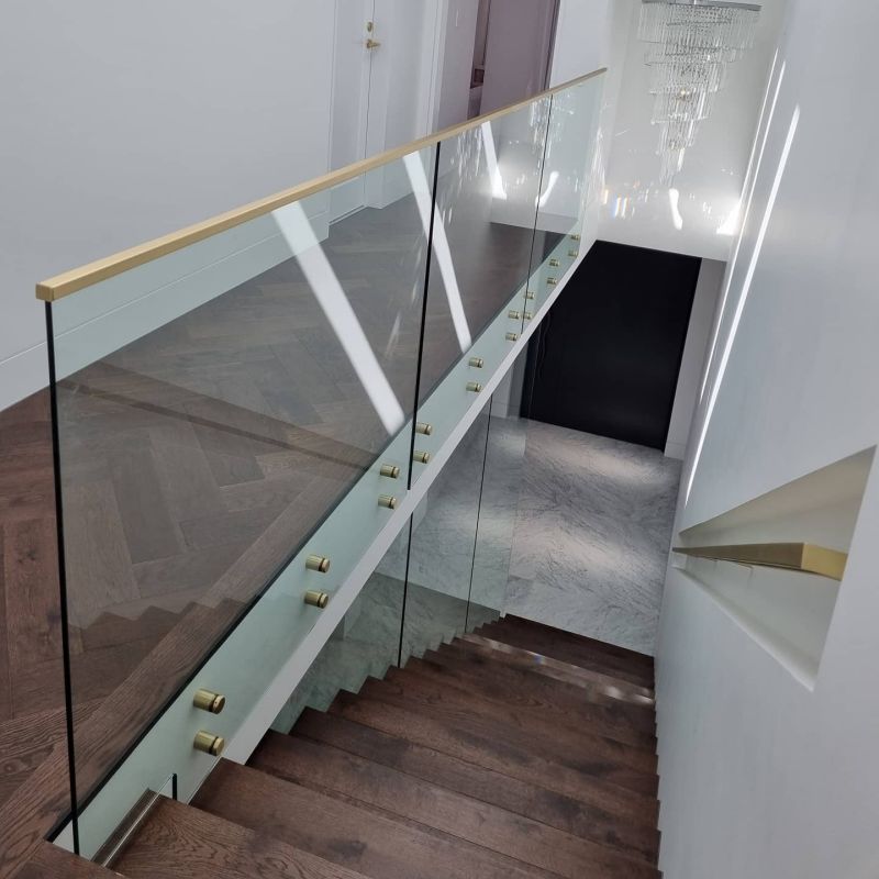 Check out the our latest house glass railing project for Canada . Round stainless steel glass railing post with 12mm thick clear tempered glass , top ...Loading containers for square type stainless steel handrails