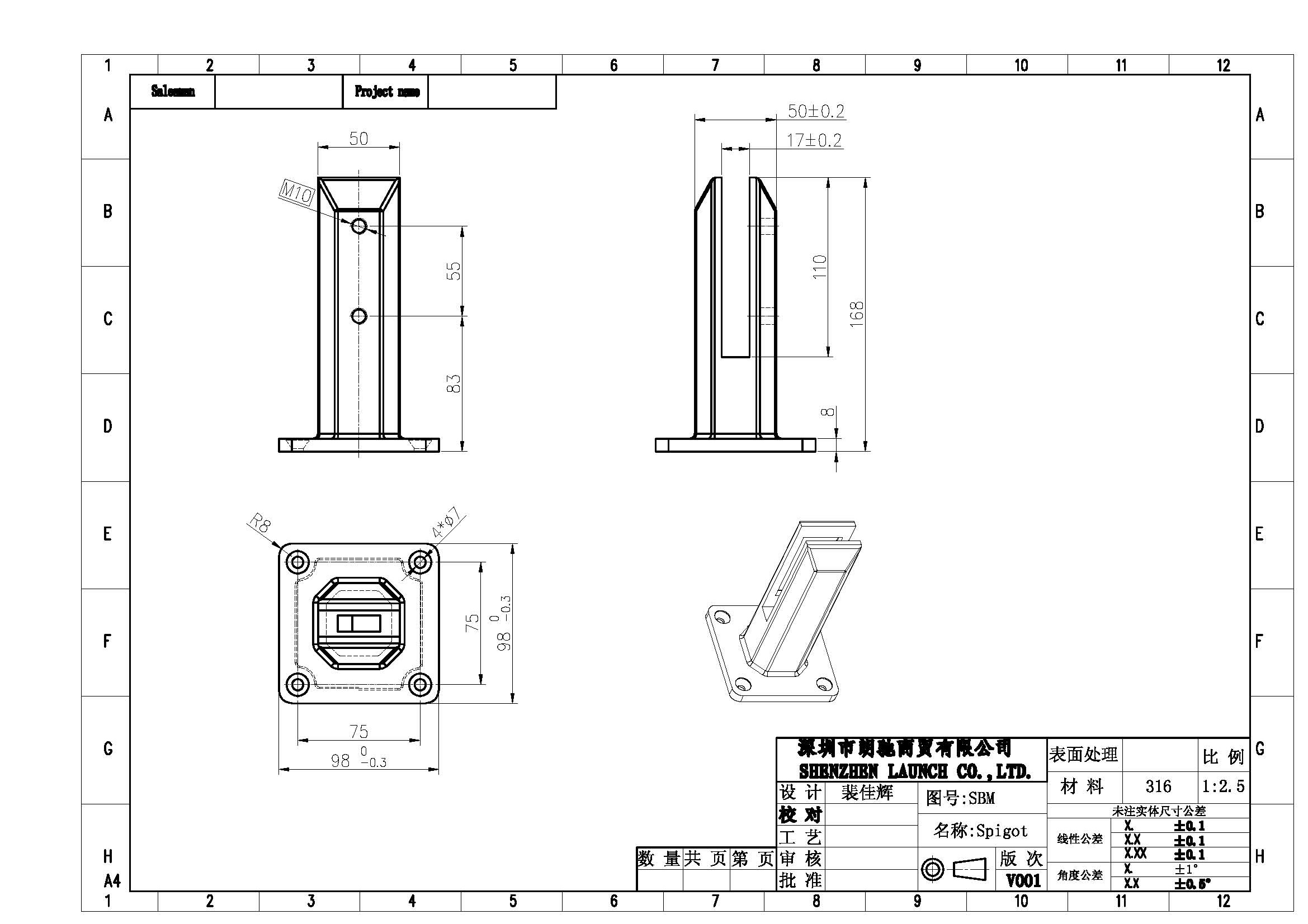 Model SBM-2, square base plate spigot is very popular design in Australia, NZ, Norway, Canada. It is used as support brackets to hold 10-13.52mm tempered glass panels for swimming pool fencing, or balconies.
