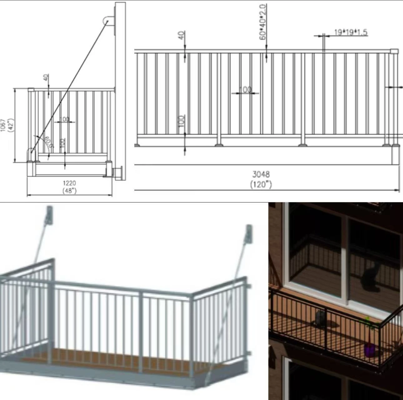 | Размеры | Ширина балконного каркаса от 1м до 2м; Длина от 2 метров до 4 метров; или нестандартный размер |