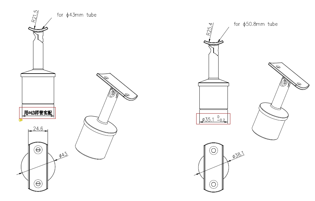 - Для 38,1 / 42,4 / 50,8 мм круглых круглых поручни